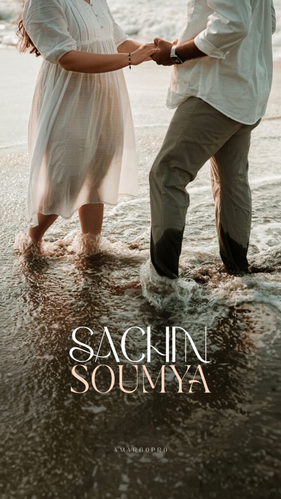 Sachin & Sowmya’s pre-wedding shoot was a perfect blend of romance, fun, and the soothing charm of the sea. Set against the golden sands and sparkling ocean, every frame beautifully told their love story. Sowmya looked radiant in her flowing outfit, glowing under the soft beach sunlight, while Sachin’s effortless style and joyful spirit added warmth to the shoot. Together, they walked hand-in-hand along the shoreline, leaving behind trails of love on the sand, as playful splashes and laughter made their chemistry shine even brighter. The setting sun painted the sky in vibrant hues of orange and pink, creating magical frames, while gentle sea breezes and rhythmic waves added a natural charm to every capture. Candid moments showcased their laughter, love, and promises for the future, with each shot reflecting not just beauty, but also the peace they found in each other’s company. Their outfits matched the dreamy vibe of the beach perfectly, while the ocean waves echoed the rhythm of their hearts beating in harmony. From romantic close-ups to wide scenic frames, the shoot balanced love and serenity effortlessly, making it feel more like a celebration than just a photoshoot. It was truly the perfect beginning to Sachin & Sowmya’s forever journey.