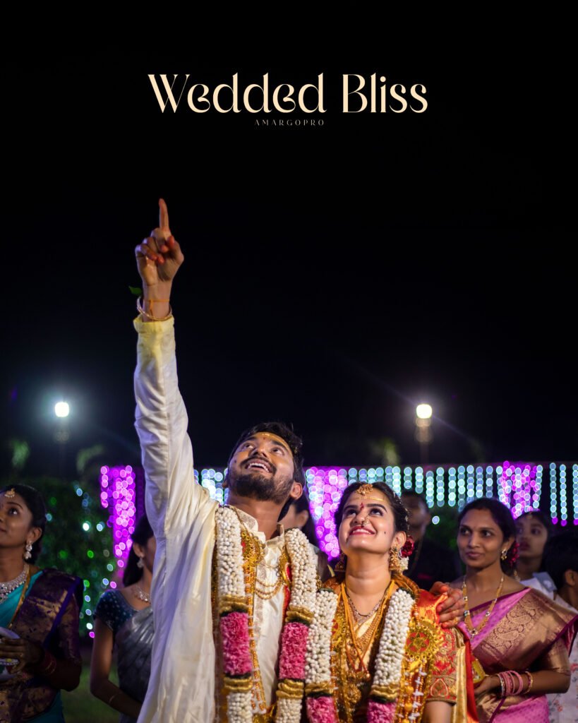 Sudeepthi & Chaitanya’s wedding celebrations were a beautiful blend of love, joy, and timeless traditions, beginning with the colorful mehendi and leading into their grand wedding ceremony. The mehendi event was filled with vibrant hues, intricate henna designs, and cheerful moments as family and friends gathered to celebrate the bride with music, laughter, and dance. The wedding day reflected elegance and cultural richness, with Sudeepthi glowing in her bridal attire and Chaitanya complementing her with charm and pride. Every ritual, from the sacred vows to the exchange of garlands, was performed with warmth and blessings from loved ones. Candid moments of laughter, emotional glances, and heartfelt embraces made the celebrations unforgettable. Together, the two events beautifully captured the couple’s journey from playful beginnings to a soulful union, creating memories to last a lifetime.
